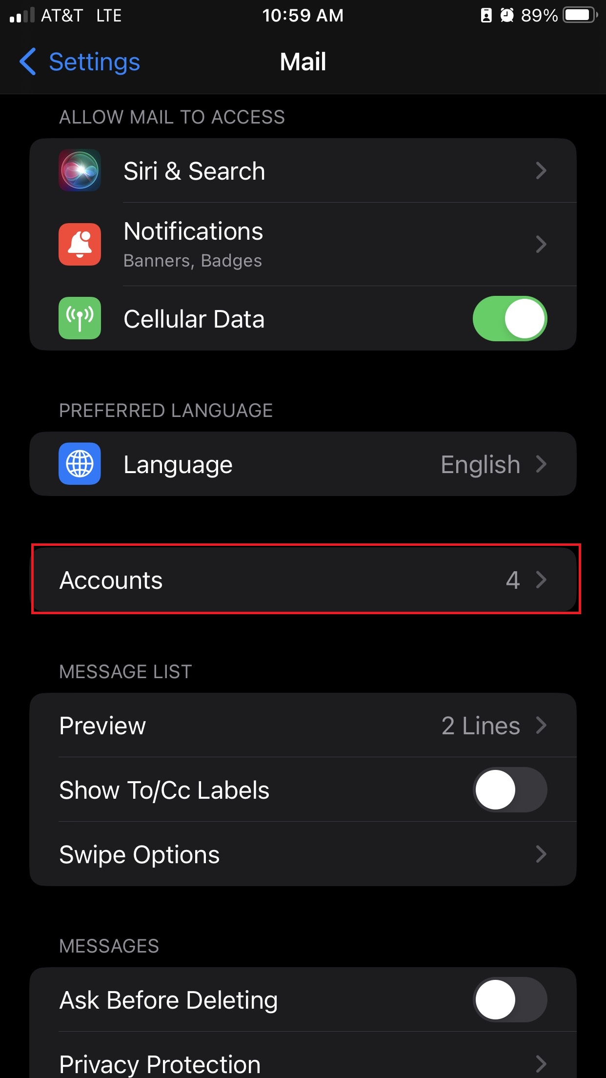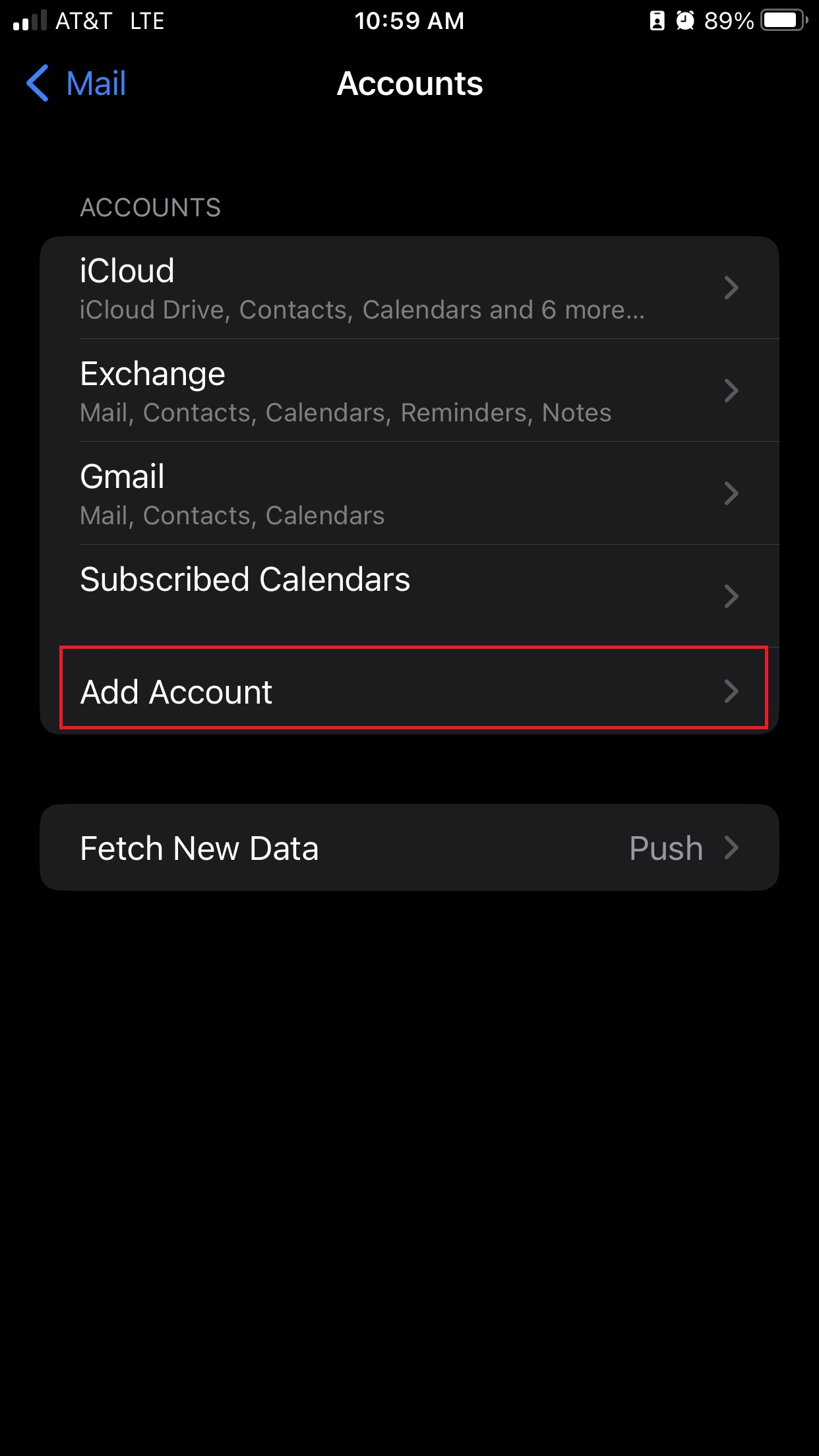 Select Accounts. On some IOS versions, this may be labeled Mail Accounts.