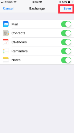 Select any additional options you would like to sync to your phone from the work account and select Save.